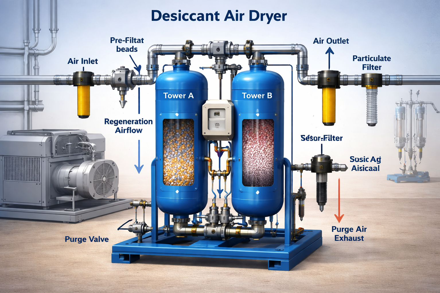 Desiccant Air Dryer in Baghpat becomes essential for industries that require extremely dry compressed air for sensitive operations. Certain production environments cannot tolerate even small traces of moisture in compressed air systems.